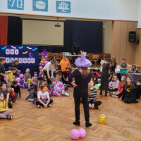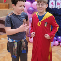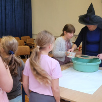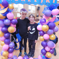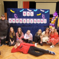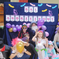 W ostatni piątek listopada odbył się w szkolnej auli strasznie fajny bal andrzejkowy. Wróżki prowadzące , skrzaty pomocnicy, wróżbita i cyganki niemal prawdziwe. Wróżby, konkursy i gorący wosk lany przez dziurkę od klucza, zabawy w kole i swobodne szaleństwo na parkiecie.