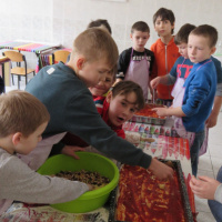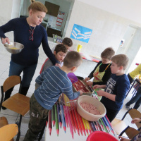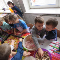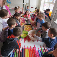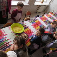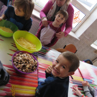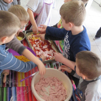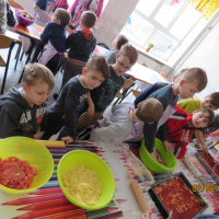 Nie było złości i takich co nie mieli ochoty na gotowanie. Maluchy z klas I, II i III wspólnie przygotowały posiłek. Pizza z różnymi dodatkami, kompozycja dowolna, co kto lubi.