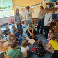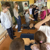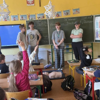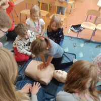 Klasa 7 przekazuje młodszym kolegom i koleżankom wiedzę z zakresu pierwszej pomocy przedmedycznej. Viktoria, Stefania, Kuba, Krzysztof i Wiktor z klasy 7 spotkali sie z uczniami z klas młodszych. Wspaniała inicjatywa. Brawo Wy :)